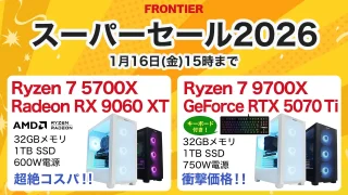 ガジェット【2026年1月】FRONTIER「好機!大決算セール」攻略|1/30 15:00〜2/6 15:00、Ryzen 7 9850X3D搭載モデルも対象