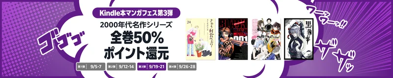 Kindle本9月マンガフェス第3弾は9月21日(日)23:59(日本時間)までに実施され、対象マンガは50%ポイント還元で実質半額となる。毎週末開催の4週企画のうち、今週分の要点と買い方を実務目線で整理する。まずは期間内に対象表示とポイント付与見込みを最終確認し、長編や全巻セットから優先してカートに入れるのが定石だ。