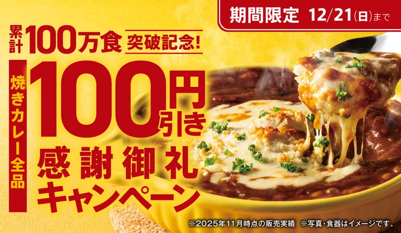 | 割引期間 | 焼きカレー全品100円引き | −100円 | 2025年12月21日まで |