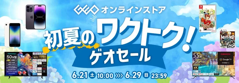 中古ゲームソフトやガジェットの宝庫ゲオオンラインストアが、初夏恒例のビッグセール「初夏のワクトク!ゲオセール」をスタートした。期間は 〜 。Switch・PS5最新作が店頭よりお得な価格で放出され、SIMフリースマホやワイヤレスイヤホンも大量に追加。オンライン限定クーポンとゲオアプリのエコポイントを併用すれば、さらに支払額を抑えられる。