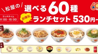 食【2026年4月7日11時開始】松屋の選べる60種ランチセットまとめ|11時〜15時限定、530円(税込)〜で30円お得