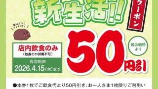 食【2026年4月15日まで】資さんうどんのフレフレ新生活クーポンまとめ|店内飲食の税込合計から50円引き