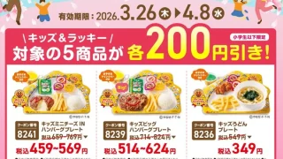食【2026年3月】ガスト 春休みわくわくキッズクーポンまとめ|5商品が各200円引き、4月8日まで