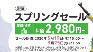 旅行【2026年3月】SPRING JAPAN 国内線スプリングセール攻略|成田-広島が片道2,980円、3月25日23時59分まで