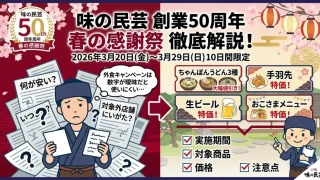 食【2026年3月】味の民芸 春の感謝祭まとめ|3月20日から29日まで、ちゃんぽんうどん・手羽先・生ビールが特価