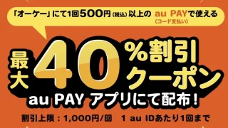 生活【2026年3月】オーケーでau PAY最大40%割引クーポン|500円以上で使える、3月20日から22日まで