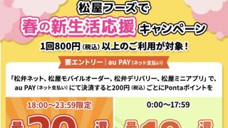 食【2026年3月】松屋 au PAY春の新生活応援キャンペーン攻略|3月16日開始、800円以上で最大20%還元と最大5%割引