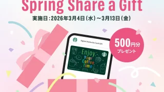 食【2026年3月】スターバックス デジタルカードギフト500円分プレゼント攻略|3,000円以上で先着、3/4 9:00〜3/13 23:59