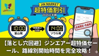 旅行【2026年1月】ジンエアー JIN MARKET 超特価割引 攻略|販売は1/26 10:00〜1/29 23:59、釜山10:00・ソウル14:00開始