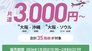 旅行【2026年1月】Peach 旅フェス第1弾攻略|1/30〜2/8 国内線&国際線が片道3,000円から