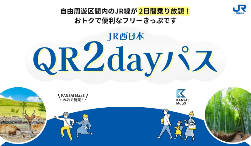 「JR西日本 QR2dayパス」は、JR西日本が提供するQRコード乗車に対応したエリアを対象に、2日間の乗り降り自由を認める周遊券である。購入はKANSAI MaaS(アプリ/WEB)のみ、駅窓口や券売機では発売しない。発売期間は2025年9月5日から2026年3月30日、利用期間は2025年9月6日から2026年3月31日まで。有効期間は連続2日間、当日の最終列車まで有効だ。