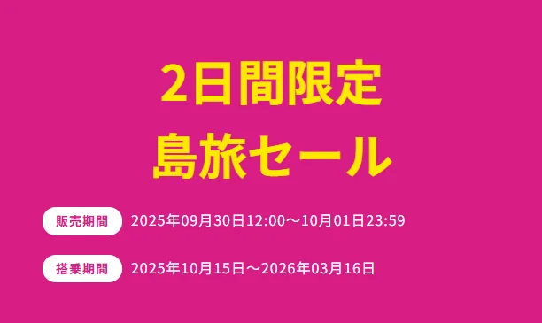 本セールは販売期間が短い集中型である。枠は路線×出発地単位で提示され、各ブロックに搭乗期間や対象曜日、除外日、対象便の注記が付く。販売開始直後と締切前に在庫が動くため、初動と終盤の二山で価格が変動しやすい。複数の出発地から島路線を束ねる構成で、同一路線でも曜日や便ごとに条件差が出る。