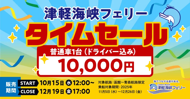 2025年10月|函館〜青森限定・普通車1万円のタイムセール開幕予告